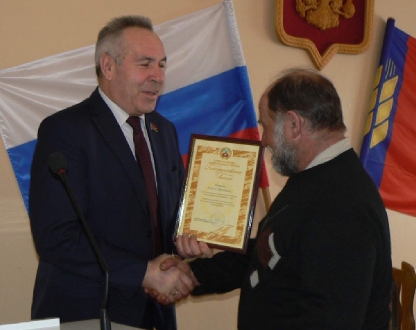 На заседании зампредседателя АКЗС наградил жителей района государственными наградами Алтайского края за высокий профессионализм, многолетний добросовестный труд и большой вклад в социально-экономическое развитие района.