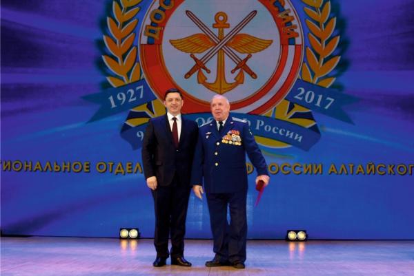 Игорь Панарин от лица депутатов Алтайского краевого Законодательного Собрания поздравил общество с юбилеем, а также вручил Почетную грамоту и Благодарственные письма АКЗС. В своем выступлении Игорь Панарин отметил, что деятельность оборонного общества являются важным и необходимым средством воспитания подрастающего поколения нашей страны: «Сегодня ДОСААФ вносит существенный вклад в развитие физической культуры и спорта, патриотическое воспитание молодежи, укрепление оборонного могущества страны в целом, а также осуществляет подготовку специалистов массовых технических профессий и развитие технического творчества. В этот торжественный день желаю всем крепкого здоровья, благополучия и дальнейших успехов в вашей деятельности на благо страны!»