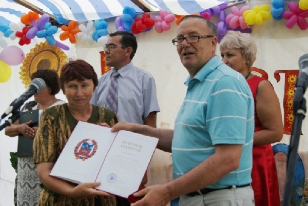 Виктор Маркович выступил с приветственным обращением к жителям села от имени депутатов Алтайского Краевого Законодательного Собрания, поздравил всех с праздником, а также вручил награды и ценные подарки заслуженным людям села.