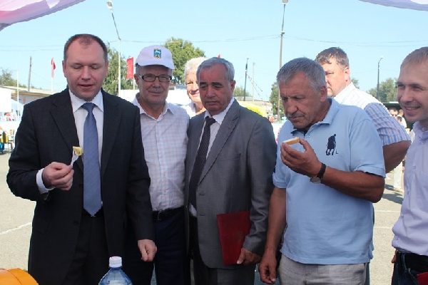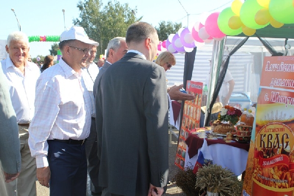 Депутаты вместе с заместителем Губернатора Владимиром Притуповым и главой администрации Шипуновского района Виктором Гельцером осмотрели выставку-продажу продукции, производимой предприятиями Шипуновского района. Особое внимание было обращено на продукцию крупнейшего производителя продукции зернопереработки на Алтае компанию «Роса».