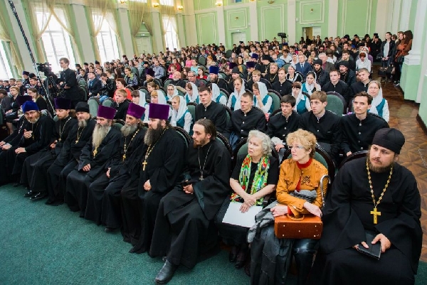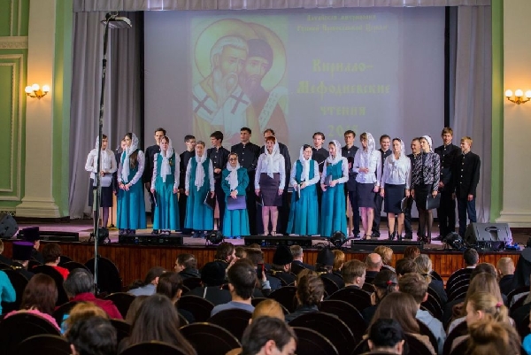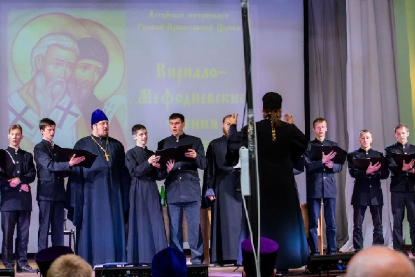 После выступления хора Барнаульской духовной семинарии и Регентской школы с приветственным словом к участникам обратился митрополит Барнаульский и Алтайский Сергий. Прежде всего, он обратил внимание на то, что святые мужи Кирилл и Мефодий больше всего сил затратили на отстаивание за каждым народом, в том числе и за славянами, права на свою культуру, свой язык, свою идентичность; и неслучайно в возрожденной России праздник святых учителей словенских - это особый день.