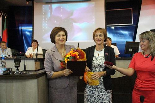 В ходе заседания Думы г. Бийска Татьяна Ильюченко вручила Почётную грамоту Алтайского краевого Законодательного Собрания начальнику управления муниципальным имуществом городской администрации Елене Осенней.