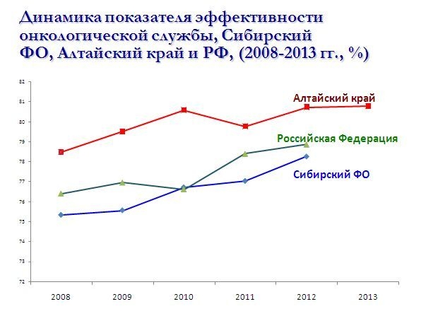 В своем докладе о повышении эффективности онкологической помощи Александр Лазарев рассказал, что в Алтайском крае диагностика злокачественных новообразований в ранних стадиях улучшается и заметно превышает среднероссийские показатели, запущенность злокачественных опухолей (IV ст.) ниже среднероссийского уровня. Общая онкологическая смертность стабилизировалась, имеется снижение. Контингент излеченных онкобольных в Алтайском крае значительно вырос. Эффективность онкологической помощи имеет постоянную тенденцию к росту и превышает средние уровни по Сибирскому Федеральному округу и Российской Федерации. Повышение эффективности онкологической помощи в Алтайском крае председатель комитета по здравоохранению и науке связывает с модернизацией здравоохранения и внедрением новых технологий в онкологическую практику.