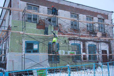 бригады утепляет стены, часть-трудится на крыше здания. Внутри уже сейчас стало