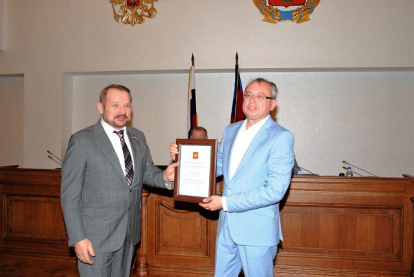 Подчеркнув возросшую активность коллег в работе по развитию российского парламентаризма, Сергей Белоусов вручил награды Совета Федерации депутатам Андрею Щукину, Марку Козловскому и Сергею Писареву.