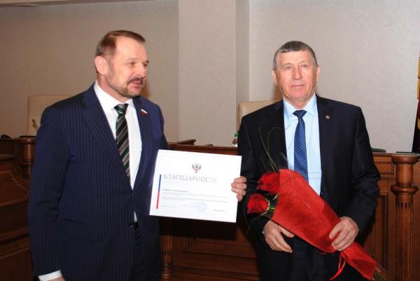 После обсуждения отчёта Губернатора сенатор вручил награды Совета Федерации руководителям представительной власти ряда районов края.