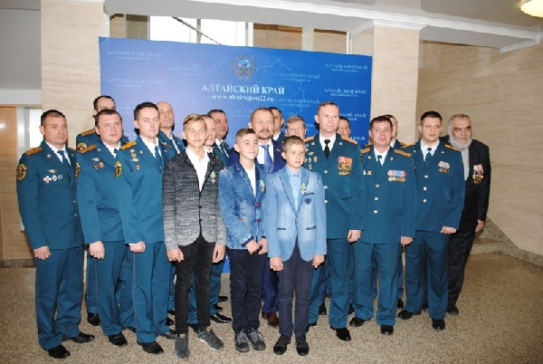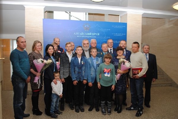 В церемонии награждения приняли участие заместитель Губернатора Алтайского края Игорь Степаненко, начальник ГУ МЧС России по Алтайскому краю Игорь Лисин, сотрудники ведомства, курсанты ВСК «Борец», Председатель Совета Алтайского краевого регионального отделения Всероссийской общественной организации «Российский Союз Спасателей» Георгий Дракин, а так же спасенный мальчик Олег Фоменко.