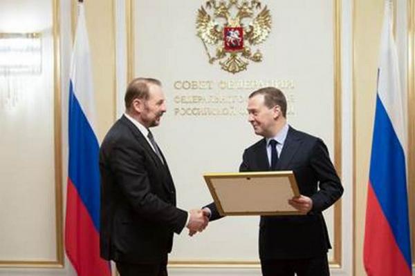 Награждение алтайского сенатора состоялось в Совете Федерации 12 февраля в рамках встречи премьер-министра с членами Совета палаты СФ, на которой обсуждались актуальные вопросы законотворческой деятельности в сфере экономики, финансов и бюджета, здравоохранения, культуры, сельского хозяйства, транспорта и международного сотрудничества.