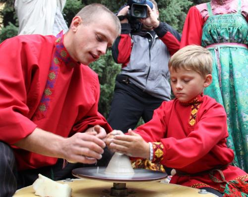 На центральной площади с раннего утра развернулся «Город мастеров». Здесь гости праздника могли познакомиться с творческими работами жителей Барнаула и районов края. Посетителям выставки представилась возможность не только увидеть и купить экспонаты, но и научиться азам вышивки, вязания, плетения, резьбы по дереву у лучших умельцев Алтайского края.