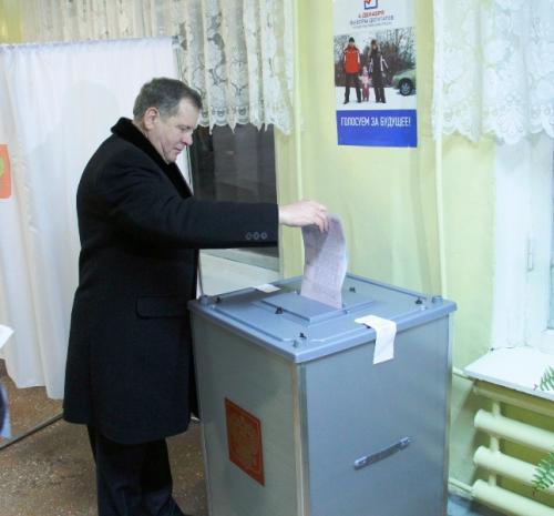 Спикер краевого парламента прибыл на участок через несколько минут после открытия его для избирателей.