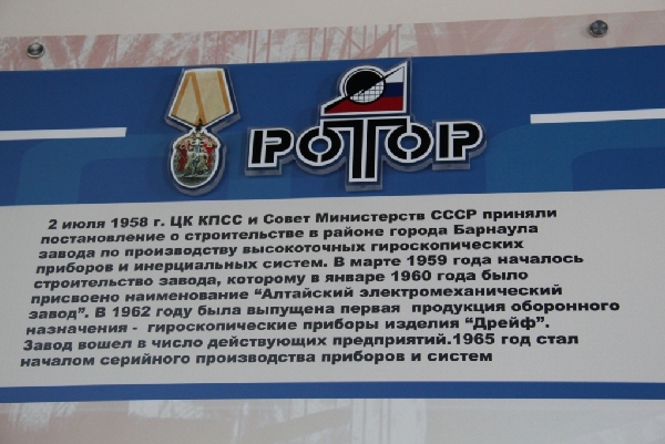Открытое акционерное общество «Алтайский приборостроительный завод «Ротор»» - одно из ведущих промышленных предприятий России. С момента своего образования, и в течение всего периода деятельности, предприятие относится к судостроительной отрасли промышленности, с 2009 года - в составе ОАО «Концерн «ЦНИИ «Электроприбор»», г. Санкт-Петербург. За более чем полувековую историю существования (год основания - 1959 г.) на предприятии произведено более тысячи видов специальной продукции и более трехсот видов товаров народного потребления. В течение последних 10 лет производство специальной техники выросло в 7 раз, прибыль предприятия выросла в 4 раза, а среднемесячная заработная плата сотрудников - в 6,5 раз. Благодаря единству миссии и ее практической реализации в слаженной работе всех подразделений, предприятие трансформирует накопленный опыт в освоение новых технологий производства и развитие новых направлений своей деятельности.
