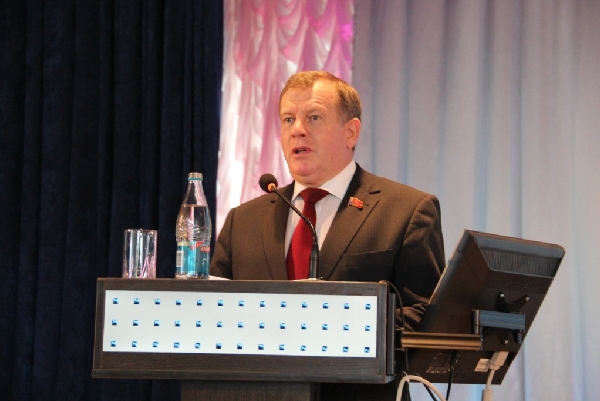 Выступая на торжественном собрании, посвященном празднику, председатель краевого Законодательного Собрания обратился к работникам и ветеранам завода: