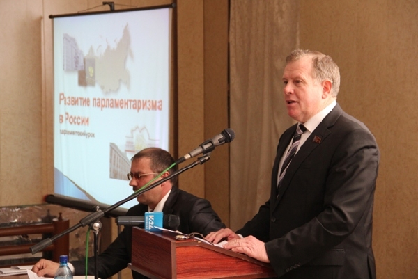 Сегодня в центральном Доме культуры Калманского района прошел Парламентский урок для учеников 11 класса. В качестве преподавателя и собеседника выступил председатель Алтайского краевого Законодательного Собрания Иван Лоор.