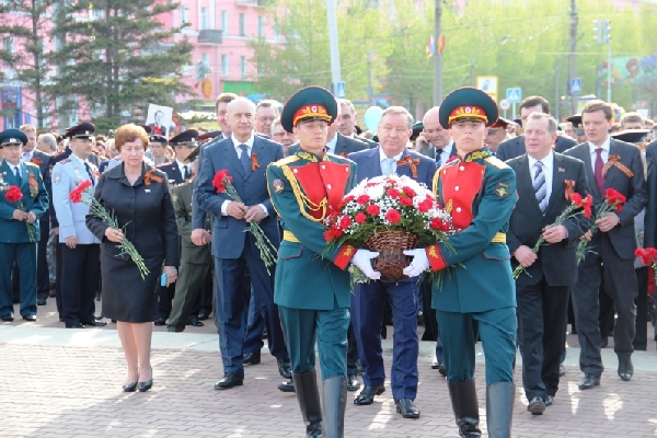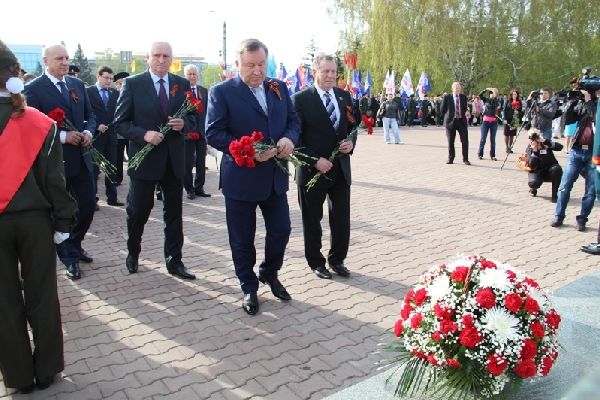 В День Победы председатель АКЗС Иван Лоор и Губернатор края Александр Карлин возложили цветы к Мемориалу Славы.