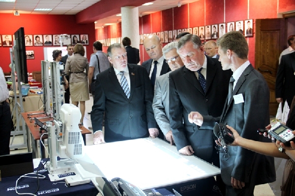 Пленарное заседание конференции предваряла выставка товаров и технологий для сферы образования. Иван Лоор и Александр Карлин ознакомились с образцами новой школьной формы и детской мебели, произведенных в Алтайском крае, а также технологическими новинками для организации образовательного процесса.