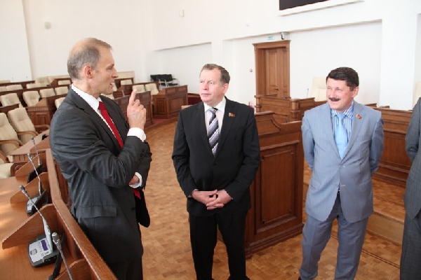 Спикер провел небольшую экскурсию по зданию Парламентского центра, познакомил гостей с работой краевого парламента и рассказал о ближайших планах работы.