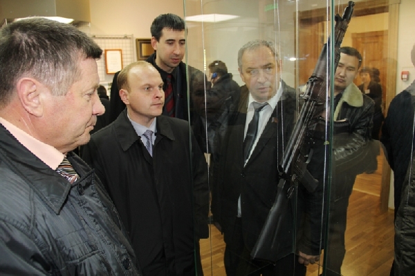 Первыми посетителями музея стали почетные гости. Александр Карлин совместно с членами семьи Михаила Калашникова с интересом осмотрели музей.