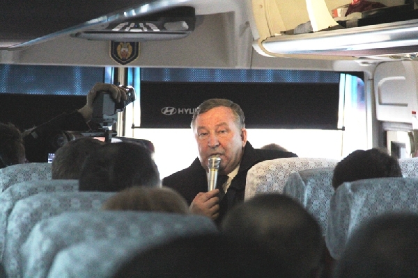 Встреча проходила в оригинальной форме. Охватив сразу три района - Курьинский, Поспелихинский и Шипуновский - участники встречи вели обсуждение актуальных вопросов краевой политики и конкретных проблем районов по ходу следования автобуса и в ходе посещений крупных социальных учреждений.