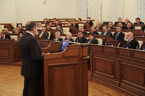 С докладом об итогах работы краевого парламента за год, а также результатах совместной работы выступил председатель АКЗС Иван Лоор.