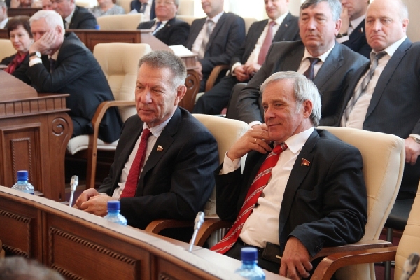 В этом зале сегодня находятся народные избранники разных созывов. Не ошибусь, если скажу, что во все периоды депутатский корпус играл особую роль в развитии Алтайского края. Проявляя активную гражданскую позицию, депутаты сплачивали неравнодушных к судьбе региона людей. Разные времена требовали разных подходов, однако можно с полной уверенностью утверждать, что народные избранники всех созывов добросовестно выполняли свой депутатский долг, активно участвовали в судьбах земляков, содействовали исполнительной власти в решении важнейших задач социально-экономического развития», - отметил глава региона.