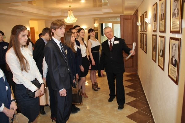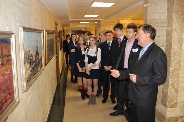 Перед уроком ребята с экскурсией осмотрели Парламентский центр - на этот раз к традиционной информации о работе структур и отделов АКЗС и картинной галерее добавилось знакомство с открытой недавно Галереей Почетных граждан Алтайского края. Старшеклассникам рассказали об истории принятия нормативного акта о создании такого звания и о многих уважаемых жителях края чьи имена запечатлены в галерее.