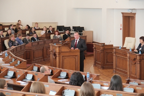 Сегодня в Алтайском краевом Законодательном Собрании прошел очередной урок, посвященный Конституции Российской Федерации, основам гражданских знаний и парламентаризма в нашей стране.