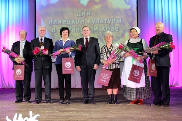 В основу большой концертной программы, открывающей Дни немецкой культуры в Алтайском крае, лег рассказ о вкладе российских немцев в развитие нашей страны, а также о видных деятелях искусства - поэтах, писателях, композиторах, музыкантах, творческих и семейных ансамблях из числа российских немцев. Частью праздника стало чествование людей, внесших весомый вклад в сохранение и популяризацию культуры российских немцев в Алтайском крае.
