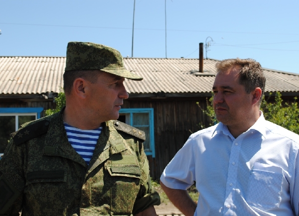 И еще нужно сказать, что в глазах людей уже нет растерянности. Для многих такое участие государства стало полной неожиданностью. Пункты раздачи гуманитарной помощи постоянно пополняются. Такое количество военной техники жители района видели разве что в кино. За 2 часа развертывается понтонный мост взамен разрушенного стихией. При его монтаже присутствует заместитель командующего войсками ЦВО Евгений Алексеевич Устинов.