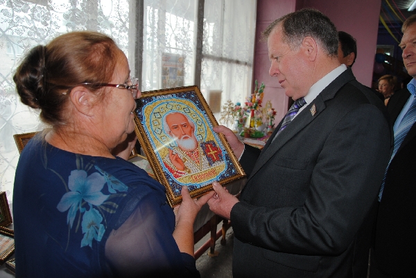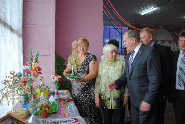 Пришедших на юбилей встречала выставка ремесел - творческие работы жителей села, показавшие, как много в Боровихе по-настоящему талантливых людей. Иван Лоор с интересом познакомился с экспозицией.