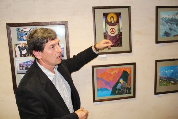 «И любопытно, что на этот раз тематика выставки имеет несколько иную направленность, чем прежде. Если раньше представляемые экспозиции были связаны с какими-то краевыми мероприятиями или датами: юбилей Шукшина, празднование 60-летия со дня освоения целинных и залежных земель и так далее, то сегодня выставка посвящена 140-летию со дня рождения художника, философа, писателя, путешественника, Николая Константиновича Рериха, который связан с Алтаем скорее духовно, чем биографически. Недаром на алтайской земле, в створе реки Катунь стоит памятник Рериху, авторство которого принадлежит нашему земляку Владимиру Войчишину.