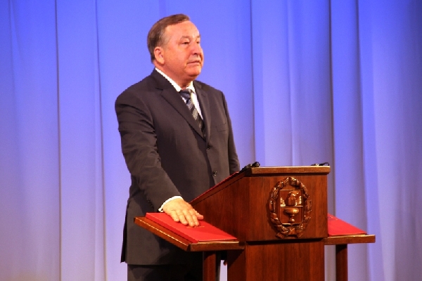 - Уважаемый Александр Богданович! На протяжении девяти лет Вы с неуемной энергией создавали новый Алтай. Стремились к тому, чтобы край стал пользоваться уважением, получил признание и в нашей стране, и за ее пределами. Вы сумели переломить систему стереотипов, изменить ориентиры и задать правильный ход развития региона. И Вы, как умелый и дальновидный руководитель, четко определили вектор движения к позитивным преобразованиям.