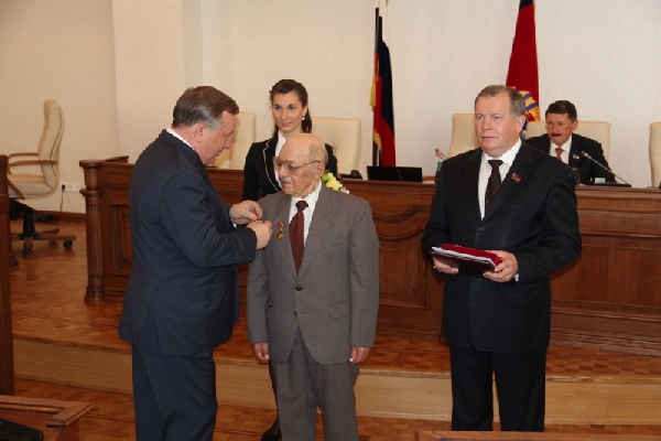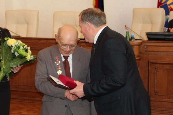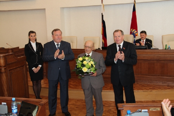 Удостоверение и нагрудный знак Почетного гражданина Анатолию Игнатовичу вручили Губернатор края Александр Карлин и председатель АКЗС Иван Лоор. Александр Бенгардт, к сожалению, не смог принять участие в церемонии.