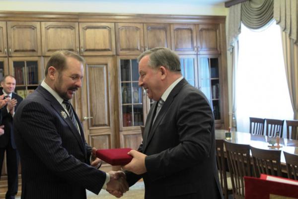 В указе Губернатора Алтайского края Александра Карлина о награждении сенатора отмечено, что награда вручается "За многолетний добросовестный труд и большой личный вклад в социально-экономическое развитие Алтайского края".