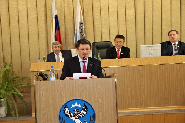 С докладом о состоянии законодательства Республики выступил Председатель ГС-ЭК РА Иван Белеков. По мнению спикера, прошедший год для Парламента Республики Алтай стал периодом активной работы по совершенствованию республиканского законодательства, по результатам которой представлен восьмой по счету, начиная с 2007 года, доклад «О состоянии законодательства в Республике Алтай в 2014 году».