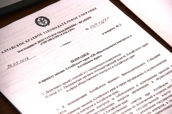 О проекте закона Алтайского края «Об общественном контроле в Алтайском крае» (54 голоса - за, 1 - воздержался):