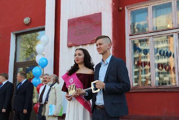 Сегодня председатель краевого Законодательного Собрания поздравил студентов АГАУ с началом нового учебного года. Торжественная линейка в честь первого учебного дня после летних каникул прошла у главного корпуса аграрного университета.