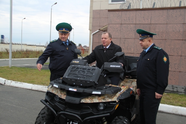 Пограничники продемонстрировали спикеру АКЗС содержащийся в идеальном порядке парк военной техники, используемой в охране государственной границы, включая снегоболотоход, который спикер краевого парламента смог испытать на ходу.