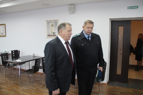 Спикер краевого парламента познакомился с условиями службы работников управления. В ходе экскурсии он ознакомился с арсеналом огнестрельного оружия, в том числе с именным подарком Михаила Тимофеевича Калашникова, который ежегодно переходит к лучшему сотруднику ведомства. Кроме того, Иван Лоор посетил спортивный зал, посмотрел современную и удобную форменную одежду пограничников, комнаты отдыха личного состава, учебные классы, прекрасно оборудованную столовую.