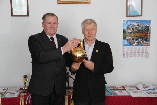 Председатель АКЗС поблагодарил спортсмена за популяризацию спорта среди молодежи, вклад в спортивное движение в Алтайском крае и вручил ему памятный подарок.