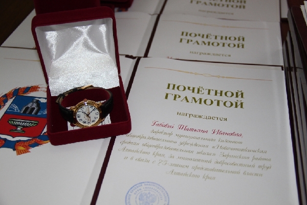 В завершение встречи председатель вручил выдающимся жителям, ветеранам и депутатам Заринского района Почетные грамоты и Благодарственные письма АКЗС, а также памятные медали "75 лет представительной власти в Алтайском крае".