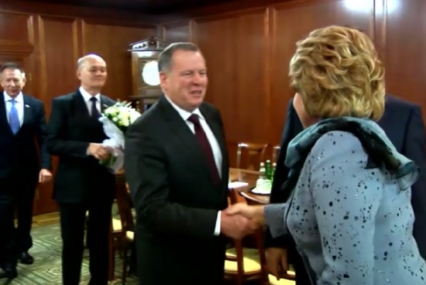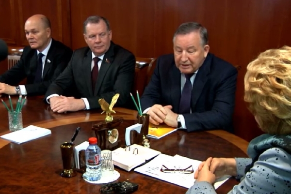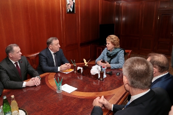 Рабочая встреча членов делегации Алтайского края с Валентиной Матвиенко состоялась сегодня, 18 ноября, в ходе Дней Алтайского края в Совете Федерации Федерального Собрания. В ней приняли участие Губернатор Алтайского края Александр Карлин, председатель Алтайского краевого Законодательного Собрания Иван Лоор и члены Совета Федерации - представители органов государственной власти региона Михаил Щетинин и Сергей Белоусов.