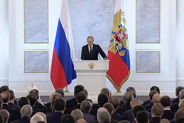 Сегодня Президент РФ Владимир Путин выступил с традиционным ежегодным посланием Федеральному Собранию. Помимо депутатов Госдумы и членов Совета Федерации в Георгиевском зале Большого Кремлевского дворца присутствовали министры, губернаторы и руководители законодательных собраний регионов, судейский корпус, религиозные и общественные деятели.