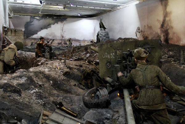 Как рассказал автор экспозиции Дмитрий Поштаренко, в расчете, бой которого был запечатлен в экспозиции, было 11 человек. Все они - уроженцы Краснощековского района Алтайского края. Героями панорамы стали алтайские солдаты и командир пехотной части Борис Зленко , Федор Подлужных , Григорий Нагайцев , Алексей Королев , Суховеев (имя неизвестно), сан.инструктор Таня (собирательный образ) и Василий Колбунов .