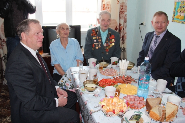 Так совпало, что Григорий Федорович Рябов сегодня празднует свой 90-летний юбилей. Несмотря на столь солидный возраст он бодр телом и душой. Думаю, что его судьба - пример того, что пока человек «в строю», болезни обходят его стороной, - отметил Иван Лоор. - Ветераны не редко говорят «спасибо Президенту за то, что назначили достойную пенсию, за поддержку». Считаю, что человеческое внимание не менее ценно и его невозможно заменить никакими деньгами. Думаю, что сегодняшняя встреча дала заряд бодрости не только ветерану, но и всем, кто принимал в ней участие».