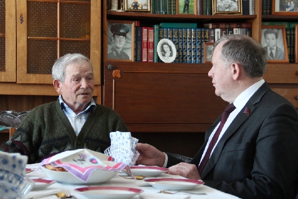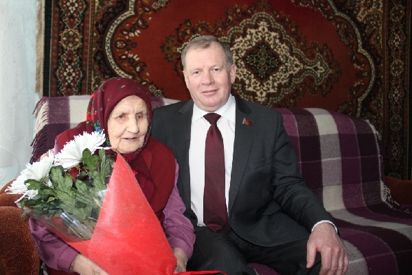 После встречи с ветеранами Иван Лоор побывал в гостях у самого заслуженного члена Союза пенсионеров России в селе - 97-летней труженицы тыла Анны Никифоровны Тарабаевой.