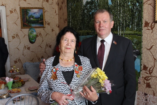 Также в Бурлинском районе председатель краевого заксобрания поздравил с отмечавшимся недавно праздником - Днем Победы - узницу фашистских лагерей в годы Великой Отечественной войны Фаину Михайловну Гордиенко.