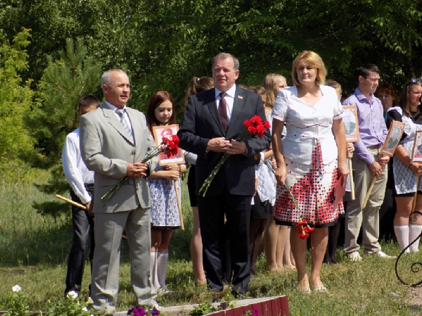 Из Суетского района на фронт в годы Великой Отечественной войны ушли 1126 призывников. По данным Книги Памяти, 962 человека не вернулись домой. «На войне, где жизнь порой измерялась броском в атаку, люди не теряли человеческого облика, не ожесточались сердцем, сохраняли способность к состраданию. Славный боевой путь прошли воины-суетцы от начала войны до самой Победы. Они участвовали в боях под Москвой, под Сталинградом на Курской дуге, прошли Польшу, сражались на подступах к Берлину. И сколько бы лет ни прошло, в памяти наших людей не изгладится те тревожные события напряжённых годов, пусть даже мы и не видели их», - обратился спикер краевого парламента к присутствующим на митинге. Вместе с руководителями района Иван Лоор возложил цветы к монументу павших героев.