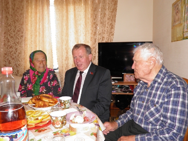 После этого состоялся традиционный разговор с ветеранами - членами районного Совета ветеранов. Иван Лоор побывал и в гостях у 92-летнего Петра Ивановича Бакланова. Участник Великой Отечественной войны, командир стрелкового отделения, Петр Иванович награжден Орденом Отечественной войны 1 ст. и медалями «За отвагу» и «За Победу над Германией». Вместе с женой Баклановой Марией Давыдовной они прожили 66 счастливых лет, вырастили и воспитали девятерых детей. За безупречный и добросовестный труд Петр Иванович неоднократно награждался Почетными грамотами, Благодарственными письмами, занесен в книгу почета РайПО, награжден знаком «Победитель социалистического соревнования».