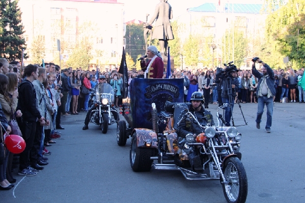 Сюрпризом для первокурсников стало появление великого русского ученого Ивана Ползунова, роль которого исполнил сотрудник центра культурно-массовой работы АлтГТУ Александр Федоров. На этот раз его сопровождал барнаульский байк-клуб «Колесница дорог», президентом которой является выпускник АлтГТУ Евгений Михайлов.