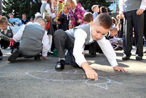 Закончилась линейка особенной церемонией гимназии, в ходе которой первоклассники с помощью выпускников мелом внесли свои имена в «летопись школы». В качестве «летописи» предстал асфальт во внутреннем дворе школы.